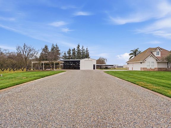 A truly rare and exceptional opportunity to own 20 pristine acres in one of Hilmar's most sought-after country locations. This beautifully remodeled, move-in-ready 4-bedroom, 3-bath residence offers ideal single-level living with all bedrooms and main living spaces downstairs, plus an expansive upstairs game room with built-in desks, perfect for a kids' retreat, home office hub, or creative flex space. Every detail has been thoughtfully updated with brand-new flooring, fresh interior and exterior paint, all new fixtures, and stylish, modern design throughout. The home is fully electric and features major upgrades including a new HVAC system, water heater, reverse osmosis system, water softener, and pool pump. Step outside and experience a true country estate: a sparkling pool, irrigated pasture, approximately 7 acres of planted Alfalfa roundup ready, barn for animals, 3-car garage, storage shop with overhang, and an impressive 5,000-sq-ft shop equipped with four roll-up doors, two bathrooms, and a private office ideal for business owners, hobbyists, or serious storage needs. Attached to the large shop is an additional storage shop with full wall shelving and two additional roll-up doors. With two wells, flood irrigation, and endless possibilities, this one-of-a-kind property delivers space, functionality, and lifestyle rarely available and impossible to replicate.