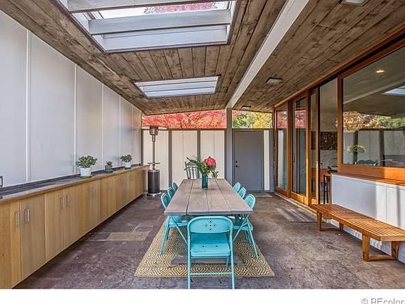 Super Cool Mid-Century Modern Home in Arapaho Hills. This 3 bedroom two bath ranch home has tons of modern character. You enter into an Indoor/Outdoor living space that is amazing. The Open Floor Plan, Floor to Ceiling Glass, Volume Ceilings, Exposed Stone and Wood and Abundance of light make this a unique home. Radiant Heat Flooring throughout. Skylights, mosaic tile and modern fixtures in each of the baths. An incredible theater room and bar in the bright and open basement finish off this Super Cool Home!!