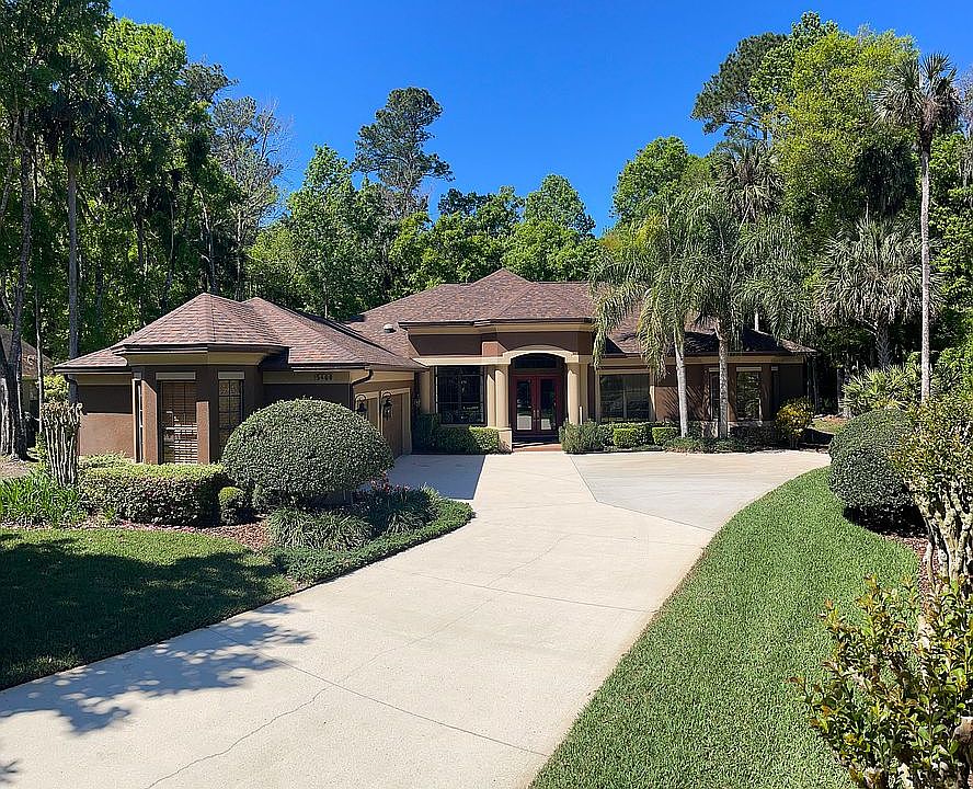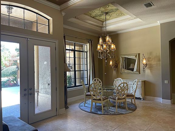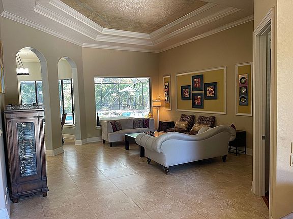 Welcome home to the luxury resort style living in the private gated community of Lake Forest. This custom estate crafted by Aurthur Rutenberg in 2001 is nestled at the end of a cul-de-sac which backs up to the protected wildlife preserve offering your family complete privacy for years to come. This spacious 3,956 sq ft home features a split floor plan that includes 4 bedrooms, 3 full baths, poolside half bath, office, bonus media room, as well as an expansive open main living area including multiple entertaining and relaxing spaces that boast trayed cathedral ceilings, large windows and floor-to-ceiling pocket sliding doors inviting in the incredible outdoor views of the pool, cabana and private back yard. The master suite occupies one side of the home and has its own pool entrance, two large walk in closets with custom shelving/storage and the en suite bath includes double vanities, walk in shower with dual heads, large soak in tub, and private toilet. All other bedrooms are spacious with huge closets and occupy the opposite side of the home. The first bedroom or possible guest suite due to its own private bath is situated just down the hall off the kitchen and has 3 large closets with custom shelving/storage space. The remaining two bedrooms are off the main living space are split by the large main bath. The utility/laundry room includes extra cabinet space, counter top and full sink and sits just inside the entrance from the oversized 3 car garage at the front of the home. This one family owned home has been immaculately cared for and maintained with wall to wall tile and wooded floors, central vacuum system, a new roof 2020, new 5-ton twin AC units in 2015/2017, new hot water tank 2019, exterior paint 2015, along with continued annual service contracts to keep this home pristine and well preserved. Start enjoying the abundant complementary amenities and social activities in your new 55-acre spring-fed lake neighborhood that has a 10,000 sq ft clubhouse with a newly remodeled fitness room, Junior Olympic-size swimming pool, heated spa, kiddie pool, beach volleyball, lighted tennis courts, new pickleball courts, sports court, two fishing piers, a park and playground, plus an incredible social committee who bring a calendar full of events for all ages. Lake Forest has been designated a National Wildlife Habitat and has a newly added butterfly and pollinator garden as well. Come see this amazing retreat and settle in for a lifetime of comfort.