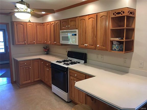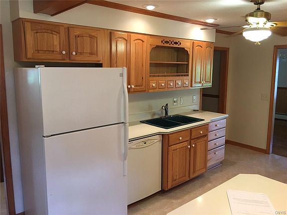 Brewerton Ranch with all major improvements done. Enjoy one level living in this 1800+ sq ft home. Home offers updated kitchen plenty of cabinet & counter space, formal dining with hardwood floors, large family room, stonewall chimney w/gas fireplace. Newer vinyl windows, 2 bdrms w/hardwoods, updated bath, brand new burnham boiler, fenced in backyard & large deck to enjoy the summers. Lifetime metal roof.