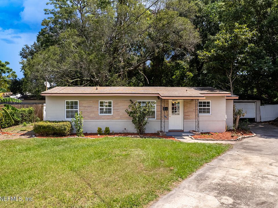 A well maintained concrete block home in a desirable Arlington location and freshly painted on the inside! One mile from the Arlington Marina where you can launch your boat into the St. John's River. Also close enough to take a walk to the river to enjoy the views. Near Jacksonville University and easy access to downtown. Enjoy the oversized fenced in back yard that is shaded by large trees. The detached garage and long driveway offers plenty of parking and car or boat storage. The large kitchen features newer appliances, hard surface countertops and pull-out storage shelves in the cabinets.