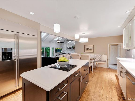 Exquisite ranch in highly desired Littleton neighborhood! You are greeted by the spacious paver front patio into the elegant foyer with granite inlay in the hardwood flooring that graces the main level! The vaulted ceiling living room is highlighted with floor to ceiling windows and welcomes you into the formal dining room crowned with designer lighting. The main level even boasts a study with shiplap wall, built in bookcase and French doors, the perfect place for that productive work environment. Imagine cooking up that delicious meal in this gourmet kitchen showcasing top of the line stainless appliances, quartz counters, island with built in grill, farm sink and once again designer lighting! Enjoy your morning or evenings around the built in breakfast nook. All this open to your wonderful family room with river rock fireplace, wet bar with wine fridge and open to your 3 tiered massive deck! An entertainers dream! The main level also has 2 spacious bedrooms both with window seats and a spa like bathroom. Wake up rejuvenated in your primary suite with his/her closets and open once again to your amazing deck. The luxurious primary bath enjoys a large shower, stand alone tub and dual sinks! The full, fully finished basement has a massive great room with theater area and room for pool, gaming and ping pong! The slate detailed bathroom is gorgeous. There is plenty of storage, a cedar lined walk in closet and another bedroom with its own walk in closet to boot! The outdoor living space is the perfect place to unwind or throw that party! Conveniently located nearby Chatfield Lake, Light Rail, South Platte River, trails, parks and restaurants. Easy access to C470 and downtown. This is the dream home you have been waiting for, so wake up and come home!