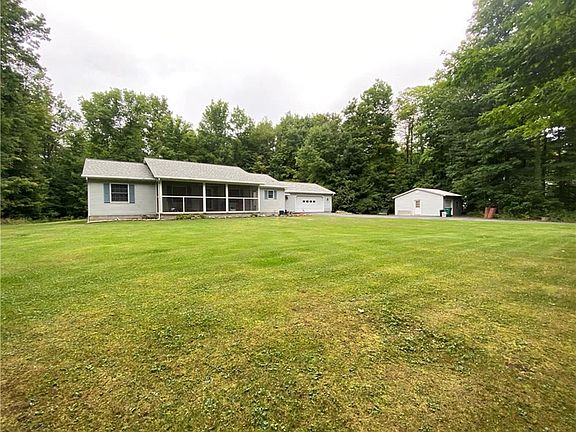Private, Wooded 5.65 acres, and a 1568 Sq ft Ranch all come together on this offering. This 3 Bed, 2 Full Bath Ranch has been well maintained with many updates. Attached 2 car garage, with finished interior walls, and a large, partially finished basement add both storage, entertaining, and work spaces. Cathedral ceilings, Screened Porch and master bed with full Bath are some of the great features. Updates include Shed roof and siding completed in 2018, main house roof completed in 2010, gutter toppers, Dishwasher/ washer and Dryer and garage door opener all recently replaced. Shows Great-