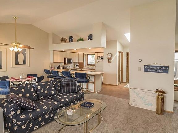 Waterfront townhouse with boat slip. The open floor-plan living space provides a great area for entertaining as does the spacious deck right off the great-room. Both bedrooms walk out to the lovely patio and the master bedroom has its own 3/4 bath. Laundry room on lower level near bedrooms as well as a full bath. There is a private courtyard between the house and the 1 car garage with car port. There are many updates done by the Sunset Ridge Association new Shingles, New Steel Siding, New Concrete Walks, New Docks, Electrical, and Tree & Landscape Maintenance. Property is close to Highway 4 and 44, also near Lake Panorama National Golf Course, The Port Restaurant, and the Marina. Come fall in love with the beautiful lake view.