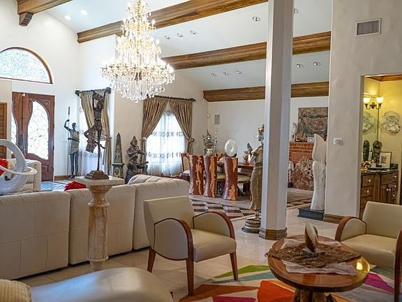 Welcome to this unique Amestoy Estate home! Nestled behind gates and sits back off the street. Enter the front doors and you are greeted by an open floor plan, wood beamed high ceilings and tons of living space. Separate family room with fireplace and coffered ceilings. Chefs kitchen with center island, granite counters and coffered ceilings. Desirable floor plan with 5 bedrooms downstairs, including the master suite. Master bedroom with fireplace, wet bar, sitting area, over sized walk in closet and private patio/sitting area. Amazing master bath with separate vanity area, separate shower & tub and sauna. Upstairs you will find a cozy loft with fireplace, balcony and 3 additional bedrooms . Out of the 8 bedrooms 4 bedrooms have their own private full baths. Yard with tennis court, pool, spa, detached rec room/office and detached 4 car garage.