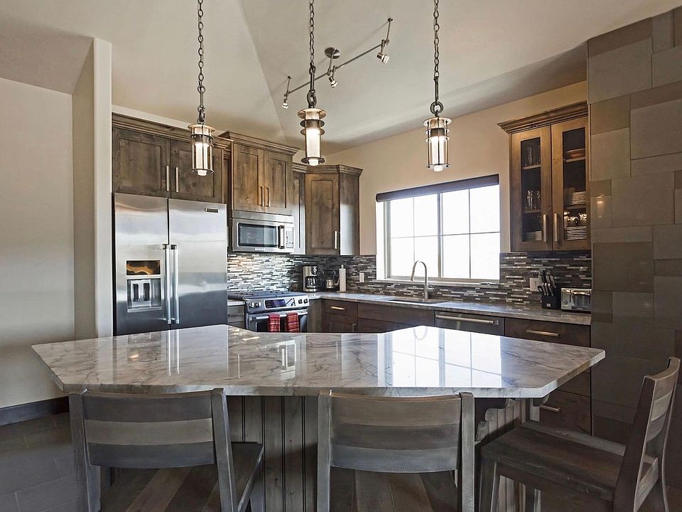 (Monthly rental available April 1, 2022) (Daily rental available, daily rates vary) Fully equipped and furnished three bedroom two bath top floor corner unit built in 2015 is not only the most desirable location of bear Hollow Ridge, but also features beautiful unobstructed mountain views, vaulted ceiling's, top-of-the-line fully equipped kitchen, new high definition TVs in every room table plus high-speed Wi-Fi Internet, washer/dryer units, gas fireplace and other impressive improvements throughout. Also includes heated underground reserve parking. Owner pays for trash, water, sewer, electric, gas, cable and internet. Condo is furnished including washer and dryer. Owner does not allow pets. Owner does not allow smoking.