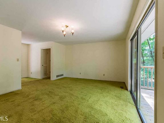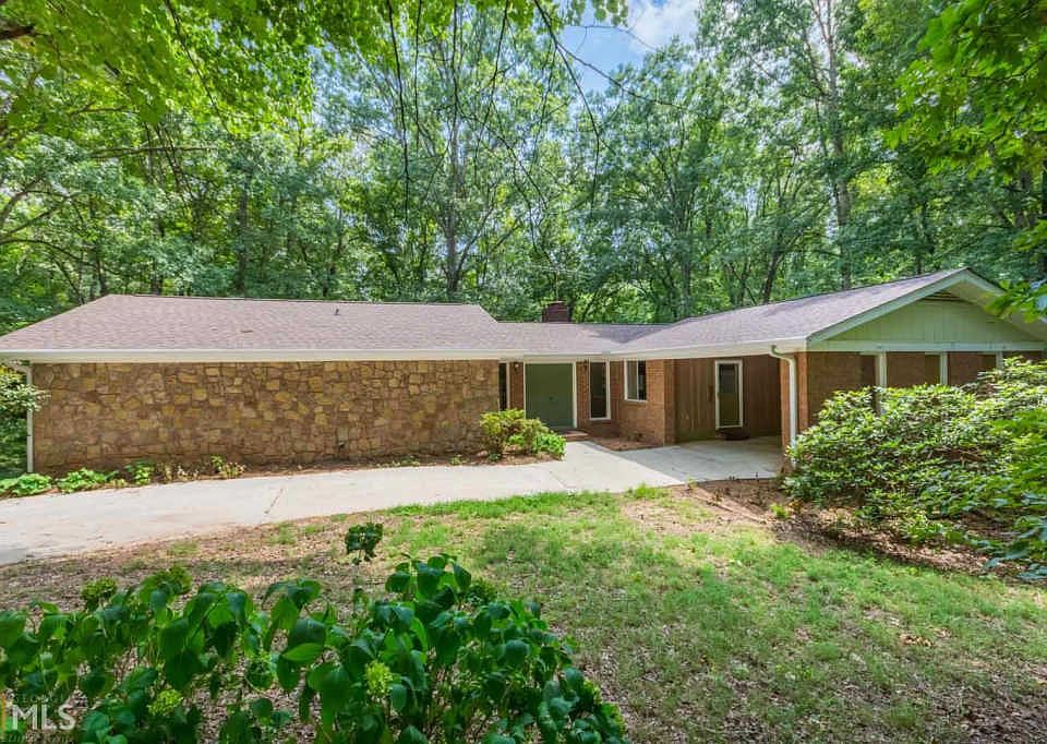 SPRAWLING BRICK RANCH ON OVER 2 ACRES IN COVETED NORTH HALL...AMAZING opportunity to update this charmer! Foyer entry into formal living room leads to back deck overlooking your private woods with room for garden area PLUS CREEK in back. COZY family room featuring abundant windows for natural light & masonry fireplace w/ gas logs and connected to SPACIOUS eat-in kitchen. Convenient laundry room and pantry. PEACEFUL master with large windows overlooking wooded yard with private en-suite featuring walk-in shower and closet. Secondary bedrooms share second full bath with tub/shower combo. HUGE unfinished walkout basement=future expansion and storage! Electrical, heat pump, roof, plumbing, deck in good condition. Come add your style for your very own show place!