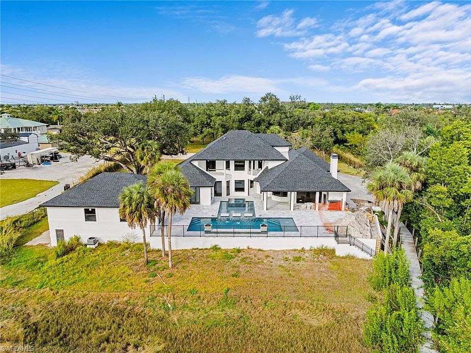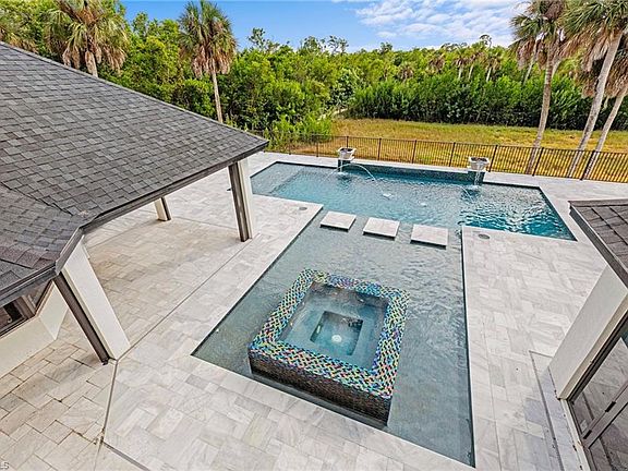 Discover one of Southwest Florida's most exceptional treasures! Spanning nearly 5 acres with direct Gulf access, this private sanctuary offers tranquility right in the heart of town. As you enter via the majestic tree-lined drive, you'll find expansive grounds adorned with magnificent mature oaks, a large pond featuring a waterfall, and charming brick paver pathways leading to a vast dock. Experience breathtaking sunsets, birdwatching, stargazing, fishing, and manatee sightings from your dock—daily delights await you here. The impressive 7-bedroom, 5 full bath, and 2 half bath home boasts stunning new Legno Bastone hardwood flooring, a new roof, and all-new hurricane impact windows and doors. Freshly painted and enhanced with an ultra high-end custom saltwater pool featuring waterfall fire bowls and deck jets, the home is flooded with natural light. Enjoy the great room with magnificent pool views, a spacious office, an additional flex room, and a home gym. The oversized 3-car garage, plus an extra 1-car garage with a 500-gallon propane tank, adds to the appeal. The expansive primary suite overlooks the pool and includes a huge walk-in closet and a spacious bathroom. The open-concept kitchen features sliders leading to the vast pool area and a generous butler's pantry. An air-conditioned workshop/craft room with an additional 1-car garage completes this incredible property. With the opportunity for the buyer to select final finishes, this lakefront masterpiece is truly special!
