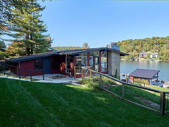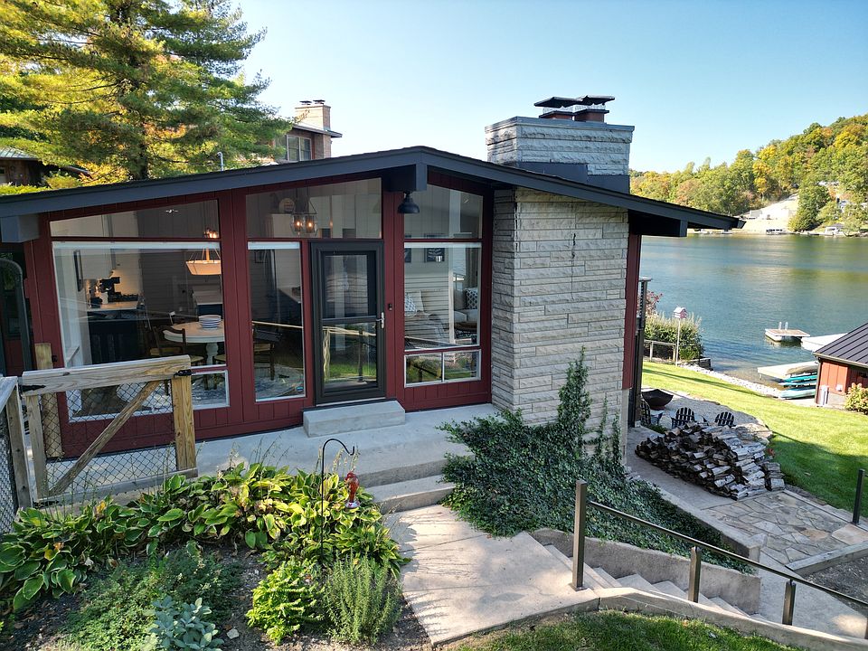 Beautifully renovated mid-century modern cottage situated on the main body of Grandview Lake. Custom kitchen with high end appliances. Updated bathrooms throughout. Recent addition of additional en suite bedroom on lower level with WIC. Large screened in patio just off lower level family room. Large fire pit with ample seating. Gorgeous new boat house with, built-in heaters, sound system, kitchenette and storage. Huge dock with 2 boat lifts and 2 wave runner lifts. 180 degree + lake views