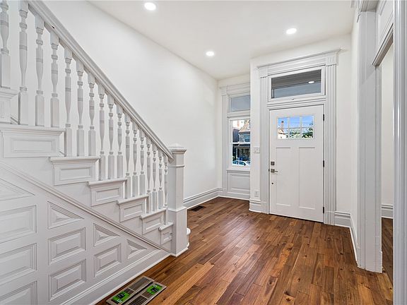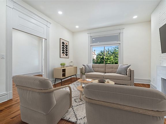This top to bottom restoration in the heart of east liberty has been meticulously updated while maintaining so much of the home’s original elements. Enter through the oversized porch into a light filled foyer where you're greeted with original moldings and new hardwood floors that continue throughout the first and second floors. The living room off the foyer has a cozy decorative fireplace and an oversized window that opens into the kitchen for a seamless flow for every day living. Chef’s kitchen boasts oversized eat in island, upgraded Kitchenaid appliances, quartz counters and generous cabinet space throughout! Dining room opens to the kitchen allowing it to be used for formal dining or everyday use. Primary suite includes walk in closet and marble clad bathroom with double vanity. Four additional bedrooms and two bathrooms make up the second and third levels of this spectacular home. Driveway space for 4+ cars, mud room, large yard, back deck, new roof and mechanicals.