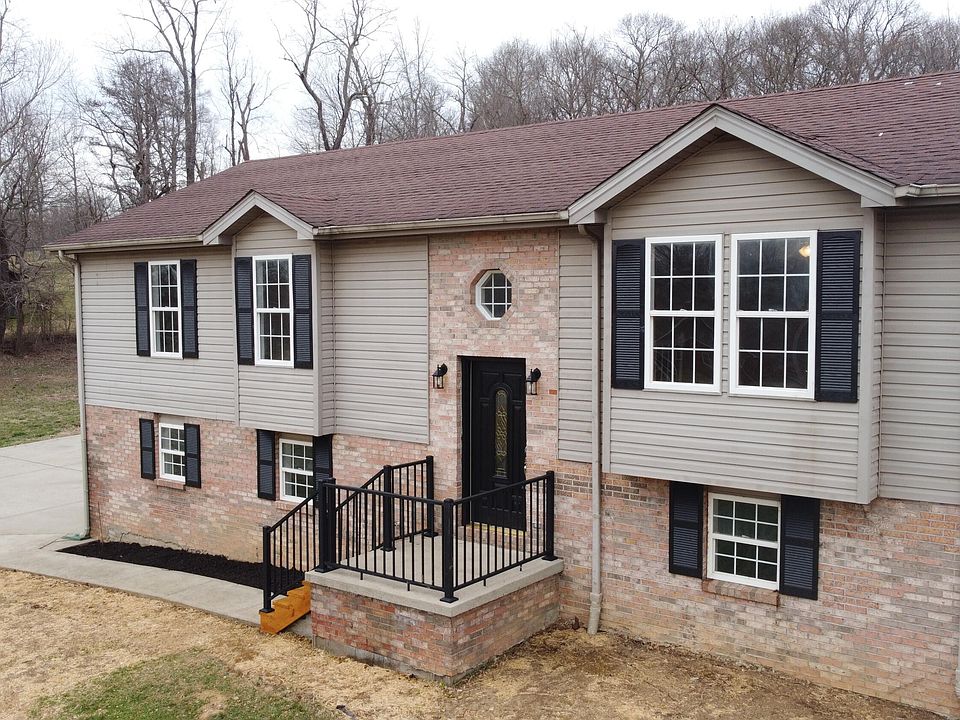 Just listed, renovated and move in ready! Lovely 4 bedroom/3 bathroom brick split foyer. Tucked back from the road on a 0.41 acre double lot on E Laurel Road. Chic black shutters and porch railing will catch your eye and the 2 car attached garage feels like pure luxury when you don't have to carry your groceries in the rain! Inside you will find a beautifully laid out home that is both updated and upgraded with new flooring and light fixtures throughout. The living room is open and airy with an abundance of natural light. The eat-in-kitchen features stainless steel appliances, a large island and fresh white cabinets. The spacious owner's suite boasts enclosed full bath. Matte black harware and navy vanity provide a stylish contemporary vibe. The main floor also includes 2 guest bedrooms and a full bathroom. Downstairs you will find an oversized family room /4th bedroom this would make great mother in law quarters or perfect for your college aged kid! There is an additional full bathroom boasting a freshly installed stand up shower and vanity. Both the water heater and HVAC were replaceed this year and the septic was pumped in November . Out back the deck BBQ ready! Call today!