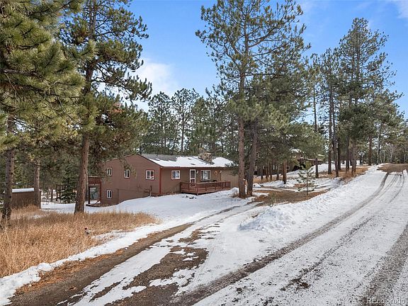 Nestled in the breathtaking landscape of Evergreen, Colorado, 5462 Maggie Lane stands as a 4-bed, 3-bath ranch-style haven, seamlessly blending modern comfort with the allure of nature. Plank wood flooring flows through the main level of the home, complementing the updated kitchen and bathrooms—a perfect union of style and functionality. The heart of this residence is its' newly updated kitchen, boasting newer appliances, quartz countertops and a design that marries aesthetics with practicality. The 2-car attached garage and new roof with Class 4 shingles add convenience and durability, enhancing the property's allure. As an extra touch of luxury, radiant floor heat ensures warmth throughout the home during colder seasons. Natural light floods the interiors, creating an inviting ambiance. The living room, featuring a wood-burning fireplace, adds a touch of warmth and charm to cozy evenings. In addition, the family room boasts a wood-burning stove, creating a rustic and inviting atmosphere. This ranch-style home is designed with main floor living in mind, providing a convenient and accessible layout for everyday living. The property's appeal is further elevated by its convenient location, offering easy access to Evergreen Lake, the local elementary school, and the high school. Imagine the ease of enjoying lakeside activities, hiking, and community events just a stone's throw away. Surrounded by mature trees, the property provides a serene retreat, its grounds offering a perfect outdoor oasis. Each bedroom, from the master suite to guest rooms, promises comfort and tranquility. This isn't just a home; it's a lifestyle. It offers refined living in a picturesque setting. Don't miss the chance to make this your sanctuary—schedule your showing today and experience the best of Evergreen living. Showings start Friday, January 12, 2024 at 9am.