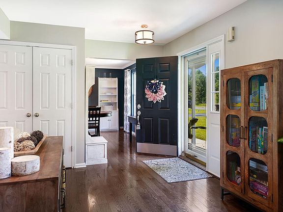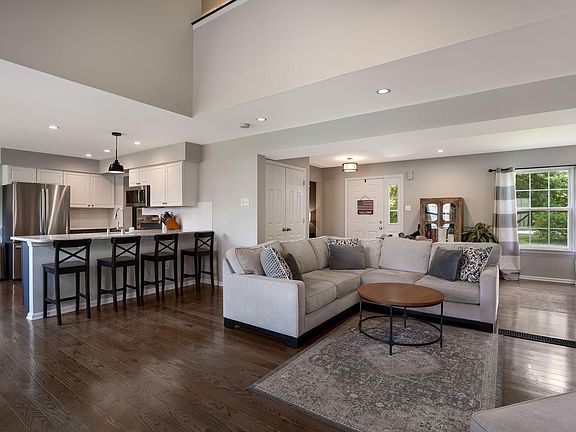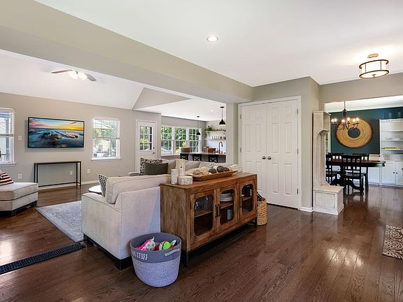 Welcome to 5463 Downs Run, a beautifully updated single-family home in the desirable Central Bucks School District. This home features 4 bedrooms, 2.5 bathrooms, a finished basement, a 2-car garage, and an oversized driveway. Step through the front door into a renovated, spacious great room with hardwood flooring, a vaulted ceiling, and an open layout that seamlessly connects to the kitchen—a perfect space for entertaining. The eat-in kitchen boasts newer stainless steel appliances, granite countertops, and a breakfast bar. Adjacent to the kitchen, you'll find the dining room, an updated half bath, and a convenient laundry area. Upstairs, the primary bedroom offers a recently renovated private bath. You'll also find three additional generously sized bedrooms, freshly painted, and an updated hall bathroom. The finished basement provides versatile additional space, featuring a large open room with new luxury vinyl flooring and two storage/utility closets. Outside, the fenced backyard is a true retreat with a large deck and portico, as well as a newer patio and fire pit area. A winding path leads to the driveway and a newer shed. Don’t miss the opportunity to make this exceptional house your next home!