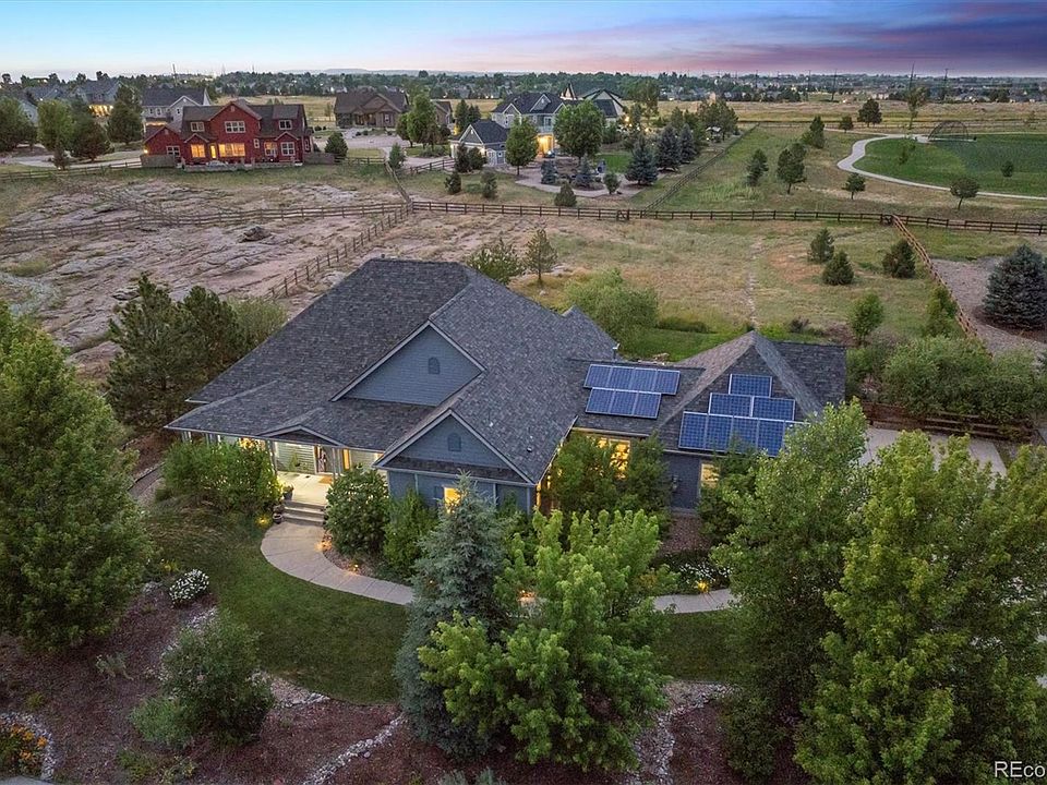 Situated on just over an acre, this sprawling ranch-style home blends privacy, space & modern elegance in the most inviting way. From the charming country porch to the bright, open interior, every detail is designed for comfort & convenience. The main floor features wood floors & new carpet along w/4 spacious bedrooms, 4 bathrooms & a dedicated office, all perfectly arranged for privacy & functionality. The primary suite is tucked away on one side of the home w/a generous walk-in closet with built-ins & 5-piece ensuite bath, while on the opposite end, a private retreat w/ its own bedroom & bath provides ideal separation for guests or multigenerational living. 2 additional bedrooms are connected by a Jack & Jill bath, perfect for families or teens. At the heart of the home, the great room has an open feel with large windows framing the views of Matney Park & open space, gas fireplace, & seamless flow into the fantastic kitchen—complete w/granite, double ovens, gas cooktop, center island bar, walk-in pantry & a sunny breakfast nook ideal for morning coffee. A formal dining room sets the stage for special gatherings. Head downstairs to the fully finished basement—an entertainer’s dream featuring an enclosed gym (equipment stays), gaming zone with a pool table, home theatre with projector, screen & surround sound, plus a kids’ playroom outfitted w/a gym mat & soccer/hockey net. A wet bar w/refrigerator rounds out the space, along with abundant storage throughout. Step outside to your private backyard oasis w/large deck, soak in the hot tub, relax & unwind under the covered patio, or stargaze. Check out the mature landscaping, flowers & trees, all backing to Matney Park for that extra open-space feel. The 3-car attached garage, extended driveway for guests & paid-off solar panels add practicality & savings. Enjoy Castlewood Ranch community where 681 acres of open space & trails are located. Just minutes to historic downtown Castle Rock.
