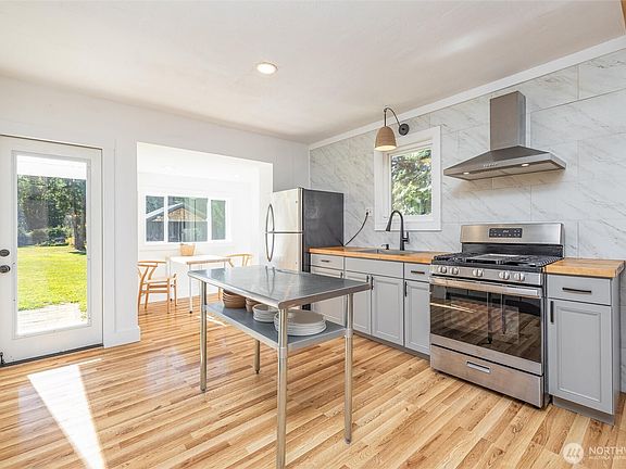 Homes on the coveted Mosquito Lake Road rarely see market and ones as tastefully updated as this are like striking gold! Located near Mt. Baker & the Nooksack River, this masterfully updated retreat blends modern updates with country charm, natural light-filled living spaces and a cozy layout. With new floors, counter, cabinets, bathroom paint & more it's move-in ready. Stay cool with the AC & warm with the pellet stove in winter. Room to garden or simply relax in nature. Private well & multiple out-buildings/ shops with power in the fully fenced yard. Enjoy the back patio & outdoor shower. Metal roof for low maintenance. The perfect lifestyle home for those who love the outdoors and modern comfort or want a place for short-term rentals!