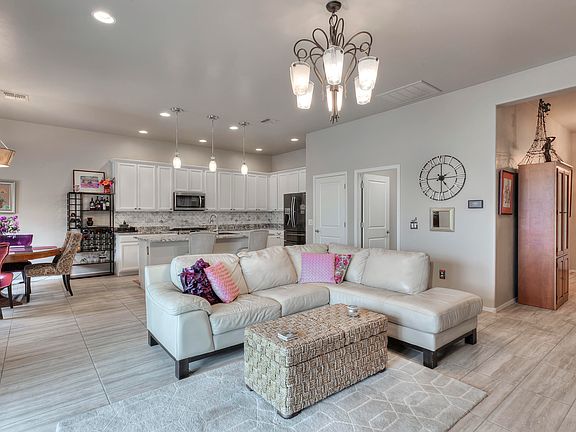* This immaculate, beautifully upgraded home in Canoa Ranch built in 2018 will take your breath away with its carefully selected designer finishes throughout! You don't have to wait for new construction or pay the higher cost of building! All of the extras are already in place like landscaping and high wall. The open floor plan is perfectly laid out with high ceilings, split bedrooms. Enter the foyer that takes you left to the guest room and hall bath, and to the den/office. Continue to the Great Room with a gourmet kitchen accented by decorator pendant lights and recessed lighting over a huge island that holds a Bianco composite granite double sink, white and grey granite countertops on top of ''linen'' upgraded 42" white cabinets with black ''Restoration'' hardware.