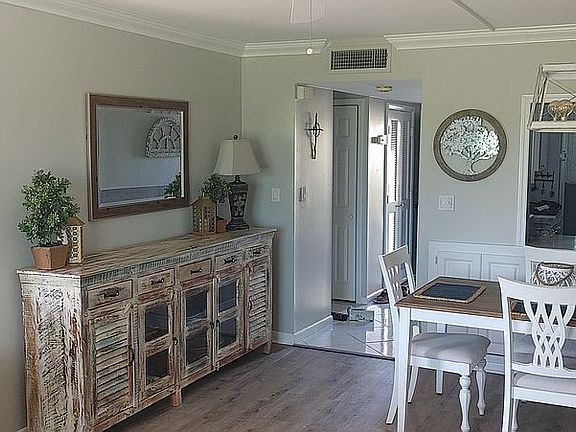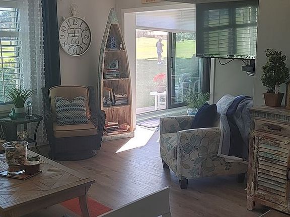 Welcome to Florida living in beautiful Miles Grant Country Club! This move-in ready unit has all the upgrades and special touches you are looking for. Enjoy the beautifully renovated kitchen, making the best use of every inch of space. New commercial grade vinyl flooring throughout, no carpets. The living area has large windows to bring in light and golf course views. A converted porch adds extra living space, perfect for a quiet spot to relax or work. Two generous bedrooms and two newly renovated bathrooms complete your part or full-time residence. All new windows and patio door installed 2020. Newer a/c and hot water heater, full accordion shutters and a new roof on the building. Social membership in Miles Grant Country Club is required. Community pool, golf, tennis, social activities and so much more are included with your membership. Get ready to start enjoying the Miles Grant lifestyle!