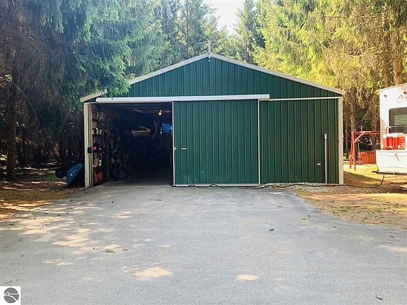 Nestled in the woods on 17 acres within 30 minutes of TC! This is the one you've been waiting for! Enjoy privacy and an abundance of wildlife while on the trail to Soper Creek that lines 660 feet of the property! Great for hunters, the seller has taken many deer off the property (see the photos of the racks that all came from the property). The pole barn is complete with a custom built man cave with tongue and groove pine and full ceder logs! Off the man cave is a deer processing room that could serve many purposes! The covered front porch is great to relax and take in the beauty of the outdoors, while soaking in the hot tub! The back deck overlooks the she-shed and meditation garden! The property has grape vines, fire pit, perennial flowers, a garden pond and a metal I Beam bridge over the creek! Create your own ATV/ORV trail system! 2 master suites, complete with full bathrooms! Start a fire in the field stone fireplace on a cool winter nice, while enjoying the open concept and vaulted ceilings. This place has been well maintained and is move in ready! Circle Drive to bring in your big rigs for an easy turn around! Paved Driveway, extra insulation for efficiency and affordability, set up for quick winterization for snow birds! Many updates including a new furnace in 2020.