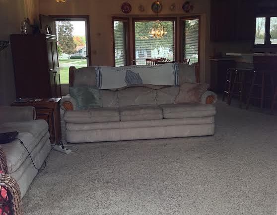 Ranch with open floor plan. Master Suite features sliders to a patio and walk-in closet. 3 bedrooms and 3 full baths. Staircase to loft just waiting for your design. Great room has sliders to deck which is 18.5 x 12.4 that overlooks pond and yard with mature trees and wildlife. Walkout basement to pond and parklike grounds. 2 car attached garage, 3 car detached garage 162 x 25 offers 3 garage doors, workshop, plumbed for a bathroom, 2 side entry doors all located on 5.02 acres.