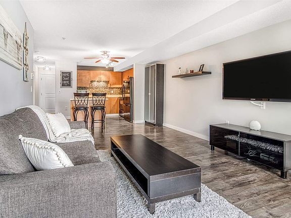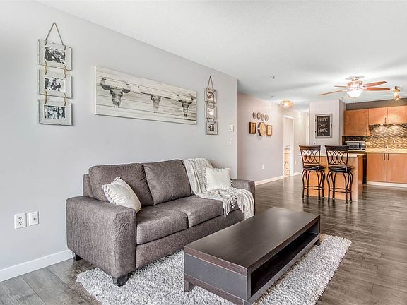 Welcome to Station 54! This is a 800+ sqft, 1 BED + DEN + 1.5 BATH condo. Featuring a COZY kitchen looking onto the main dining/living rooms! Relax on the covered deck with a cup of coffee and CITY VIEWS. Expect morning sun through the big windows into main living space & master bedroom, 4 pce ensuite off master with walk-through closet, brand new stacking W/D, LARGE 8x8 Den off foyer that could easily be a second bedroom. Beautifully renovated with new laminate floors, replaced tiles in the bathrooms, fresh paint (2019), newer appliances, an updated backsplash and much more! Great building with excellent maintenance history, built 2004, fully rain screened, small pets ok, walking distance to countless amenities, walking trails & parks. Book a showing now! Virtual Walkthru Available.