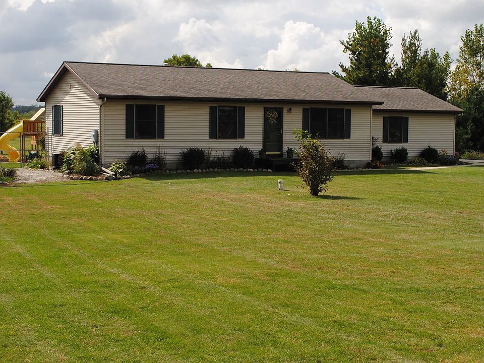 3 beds, 1 1/2 baths. Basement has finished family room. Main floor laundry. 8.19 acres with large fenced in area. House has natural gas.