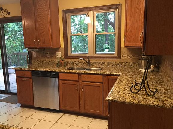 This walk-out Rambler features: Remodeled Kitchen in 2010 w/ Stainless Steel Appliances, Cabinets, Granite Counters, Tile Back-Splash and Light Fixtures!4 Bedrooms, (3 on 1 Level) 3 Baths, Huge Deck with water diversion system, Huge Paver-Patio, and 2 Car Garage on a Treed-Lot! Other features include: Architectural Shingles and Family Room with Wet Bar & Fireplace!