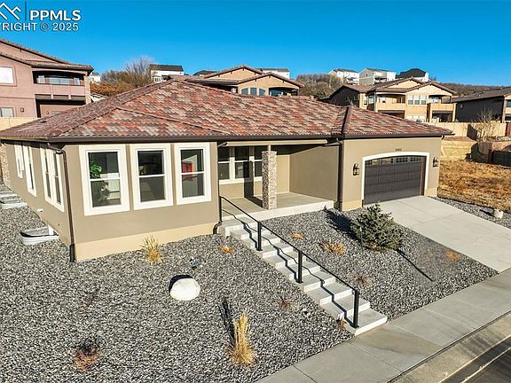 Experience the Best of Colorado Main Level Living! Welcome to your perfect slice of paradise, where stunning Pikes Peak views take center stage! This beautifully designed Templeton Heights home offers low-maintenance luxury with a durable stucco exterior and Boral Villa 900 cement tile roofing—built to last for years to come. Energy-efficient features like a high-performance furnace and water heater add comfort and savings to your everyday life. Step inside to a spacious great room concept filled with thoughtful upgrades, including custom and recessed lighting, soft-close cabinetry, and granite countertops in the kitchen and breakfast bar area. Cozy up by the gas log fireplace or enjoy year-round comfort with central air conditioning. Need a home office? A versatile third room provides the ideal office space for work or hobbies. Plus, main-floor laundry means no more hauling loads up and down stairs! Outside, a covered patio invites you to relax in a low-maintenance yard equipped with a simple drip system. Looking for extra space? The unfinished basement offers endless possibilities to customize to your needs. If effortless living and breathtaking views sound like your dream home, it's time to make your move! Schedule your showing today!