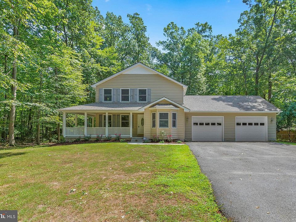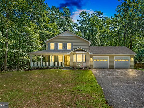 ***OPEN HOUSE SAT & SUN 9/7 & 9/8 12pm-2pm!***Set way off the road, follow the winding tree lined driveway into your wooded oasis. This is ready for you to call it HOME! Sip your morning coffee while overlooking your acre of privacy from the wrap around 40ft concrete porch. Upon entering, your met with hardwood floors & fresh paint. The open floor plan welcomes you into the family room right off the eat in kitchen boasting Granite counters, updated appliances & 42in cabinets. 1st floor bedroom could be used as a bonus rec room or den. Large master suite has an attached full bath. Spacious 2 bedroom upstairs as well. The rear yard is fully fenced in. Need storage or have a car enthusiast in the family? They'll flip over the gigantic 28x30ft attached 2 car garage! All this can be yours with 100% financing! 25 minutes to DC, VA & 30mins south of Annapolis!
