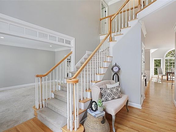 - Interior: Foyer - Entrance, Ceilings 9 Ft Plus, Double Vanity, Gas Logs, Separate Shower, Whirlpool Bath, Rear Stairs, Tile Bath, Ceilings - Trey, Carpet, Foyer - 2 Story