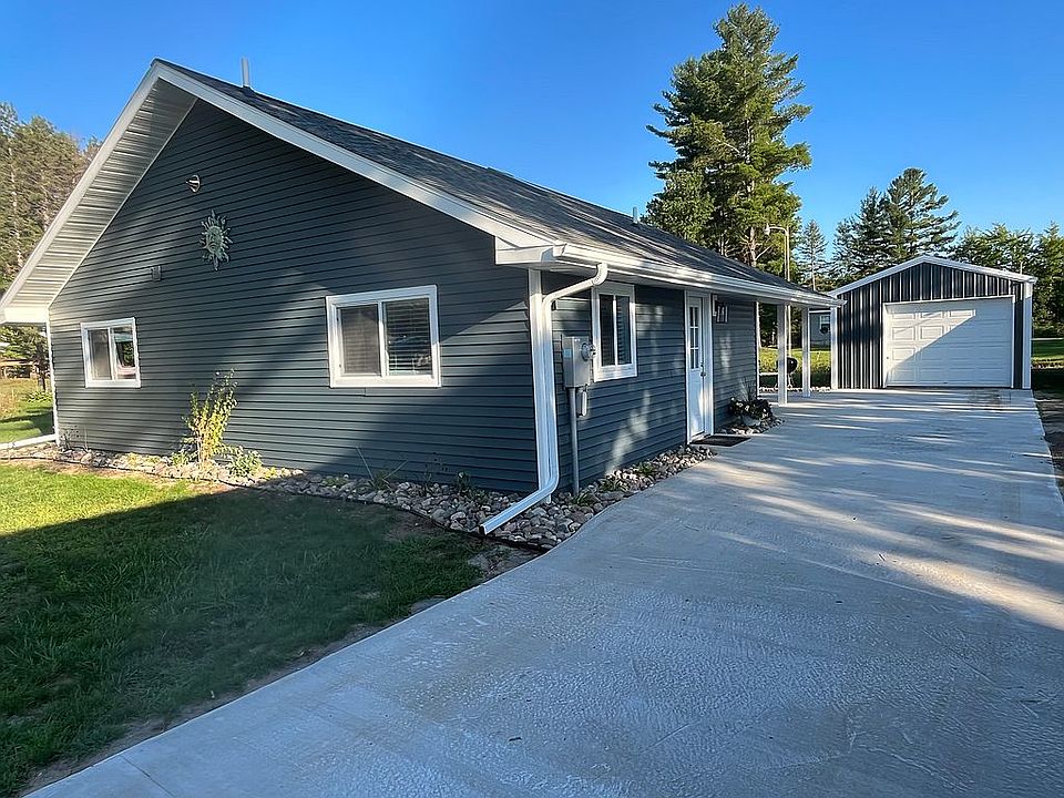 Bright and beautiful newly renovated top to bottom 2 bedroom plus den/ potential 3 rd bedroom and 2 bath (including master) home on Wixom lake canal close to main lake. Cathedral ceilings throughout living areas and bedrooms make this home more open and spacious. The open concept floor plan is perfect for entertaining. The new large windows, patio doors and a skylight provide an abundance of natural light and a great view of the anticipated return of the lake. The bright kitchen is equipped with an island, quartz countertop, and tile backsplash making this a space you’ll enjoy for years. New furnace, air conditioning, on-demand water heater, and new electric added to spray foam insulation in the walls and cellulose in the attic make this a comfortable temperature controlled space for all seasons and full time residents. Covered patio and fire pit provide lots of outdoor living space. New vinyl siding, roof, gutters, cement driveway, patio, and tasteful landscaping provide desirable curb appeal and a maintenance free exterior. Storage shed plus garage will house your extra toys. Steel sea wall on 66 feet of water front canal. Heron Cove street is on schedule to be paved spring of 2023. So much more to see. Please contact for a personal showing.