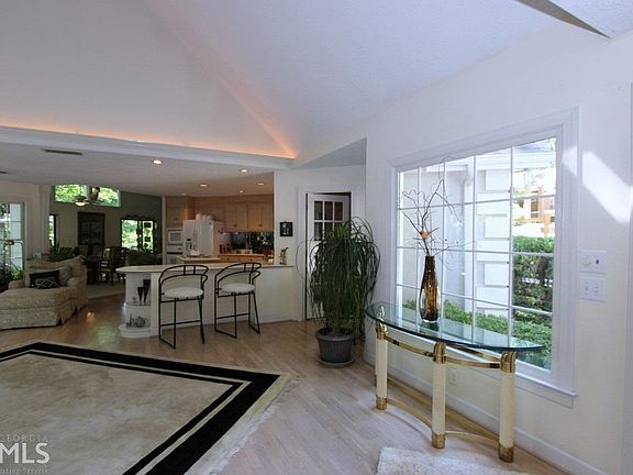 Entertainers European bright and open design with Lake Living in mind! Views of deep water cove from almost every room in the house! 159 of lake frontage, E-Z walk to single slip party dock-permitted for 32 X 32 party dock, includes water and power. Best location-2 min. from GA 400, new Kroger, Costco and retail. Gas up the boat at Baldridge Marina. French and sliding doors line the back of the house giving access to a full wrap around deck. Two master suites, 2 fireplaces, good flex space. Enjoy the good life!