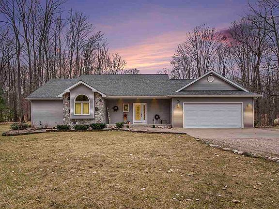 Discover serenity and convenience in this move-in-ready 4-bedroom, 3-bath home nestled on 12 acres. The open floor plan features a main level primary suite with a large walk-in closet and adjacent laundry for ultimate convenience. A walkout finished lower level, ready for a wet bar, and a hot tub on the lower deck offer endless entertainment possibilities. Practicality meets passion with an 8x12 electrified storage shed, a 30x40 pole barn with electricity and a heated workshop, two permanent deer blinds, and a fenced garden, blending modern living with the joys of the outdoors in a perfect sanctuary.