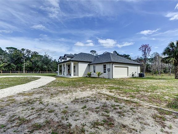Back on the market!!! Welcome home to this nearly new and beautiful 4 bedroom, 2 bath home, custom built in 2018 and situated on over 6 acres! This home offers an open floor plan with plenty of room for the whole family. Your designer kitchen comes equipped with solid wood cabinets, granite countertops, a deep stone kitchen sink, a mounted pot filler, and stainless steel appliances. With it's open design and easy access to your screened in back porch, it makes entertaining a breeze! The master suite offers private access to your screened in back porch, as well as a large en-suite private bathroom equipped with an extended vanity offering his/her sinks, granite countertops, a large walk in closet, walk in shower and dual shower heads. The secondary bedrooms are nicely sized and separate from the master suite, all offering ceiling fans and walk in closets. The garage offers a mini split A/C unit, making it the perfect workshop to escape this Florida heat. There are two detached sheds on the property that provide ample storage space for all of your toys or lawn equipment. With it's custom design and endless upgrades, this home is a must see! Call to schedule your tour today!!