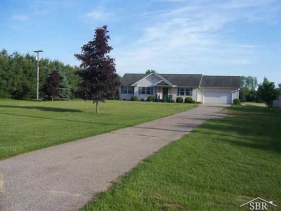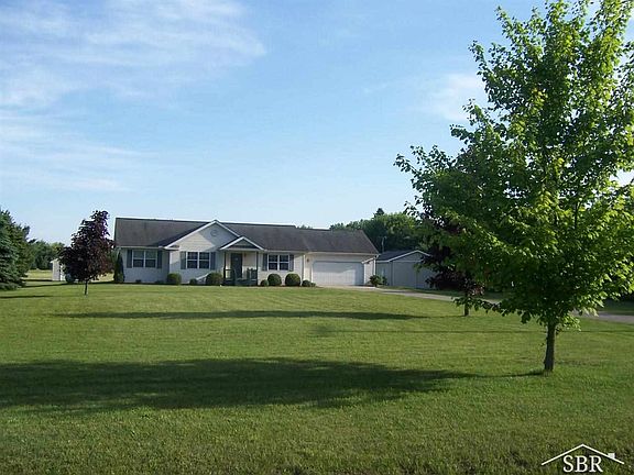 3 Bedroom ranch with cathedral ceilings, skylights, 2 full bathrooms, 2 car attached garage, with additional 14x21 garage and 24x24 pole barn. Neatly landscaped and mature Blue Spruce trees on over 2 acres of land.