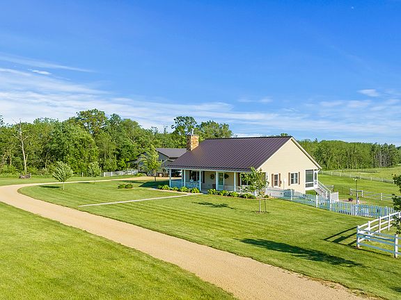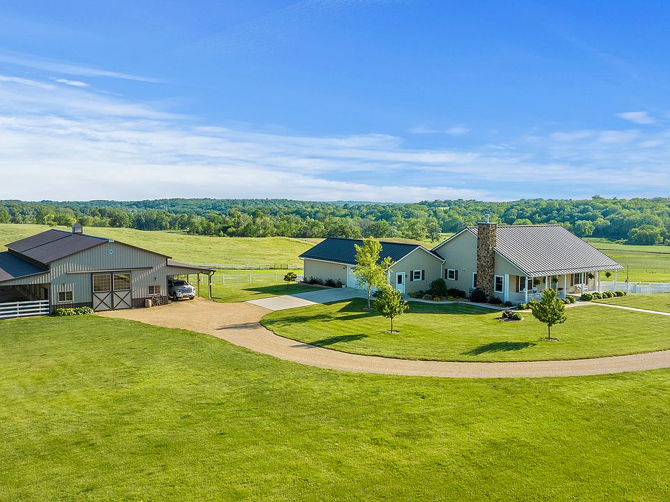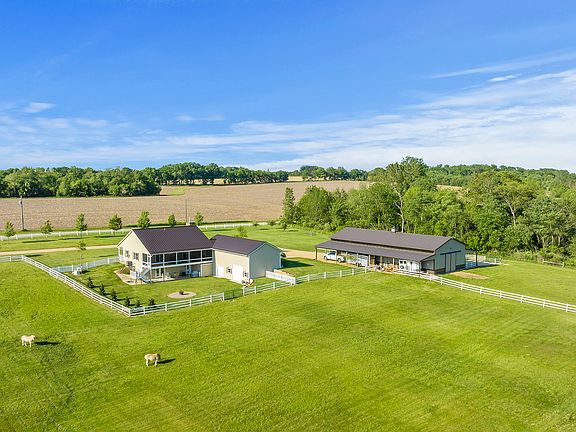 Sprawling 22+ acres with Amazing Views and a recently built, like new construction meticulous home offering all of today's most wanteds. This property offers an unparalleled blend of quality craftmanship, pride of ownership, top of the line finishes, functionality, and natural beauty. As you explore this magnificent property, you will discover a variety of remarkable features both inside and out. The 42 x 90 out building with 15 ft. overhangs provides ample space for all your agricultural/horse/hobby needs. Currently offering 6 finished horse stalls, tack room, utility room with heated water, interior bath bay and a finished office offering convenience and versatility. The custom-built home itself is a testament to modern craftsmanship and attention to every detail. Constructed with 2 x 6 framing, energy efficient foam insulation, Pella windows, zoned heating with electric air filter, Navien tankless hot water heater and for peace of mind a whole house backup generator. Truly a maintenance free exterior with newly installed Seamless Metal Roof (2023) guarantees durability and longevity. Enjoy any hour of the day watching the sun come up or go down on the expansive back screened porch with Trex decking looking out over the property. Eye-catching epoxy coated garage & front porch floors help to make this residence offer optimal efficiency and comfort. The home boasts impressive finishes throughout showcasing the meticulous attention to detail that went into its design. Offering 2-3 bedrooms, 2 full baths with onyx walk-in showers and a full finished walk-out lower level with "storage/storm/safe" room & a pet wash station room that could easily be turned into a lower level kitchen if someone was in need of multi-generational living quarters. Did we mention.... plenty of garage space (6+ stalls) for storage of cars, toys, tractors.... anything an outdoor enthusiast may need storage for. From the moment you enter, you will be enchanted by the seamless integration of style and functionality. Don't miss this extraordinary opportunity to own a newer construction home on 22+ acres offering a perfect blend of natural beauty, modern comforts, and quality finishes. Schedule your private tour today and experience the true definition of tranquil rural estate.