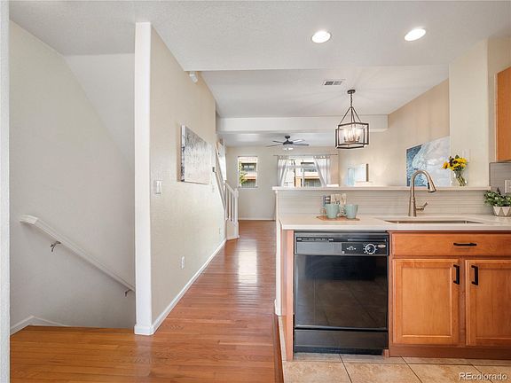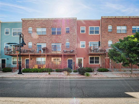 This charming home is perfectly situated in a stellar location just steps from Olde Town Arvada and two blocks from G Line Light Rail. Nestled on Water Tower Promenade, this 2 bed, 2.5 bath (2 FULL baths) offers the perfect blend of urban comfort & historic charm. As you step towards the front door you are greeted by a cozy porch providing a tranquil oasis for morning coffee or evening relaxation. Just as you enter, you will have a 2 car attached garage entry & stairs leading you to the main floor. A sense of warmth with updated kitchen featuring quartz countertops & sleek shaker cabinets with ample storage. You will also enjoy a quaint flex office nook & convenient updated powder room. Past the kitchen is a comfortable dining space & living room with elegant wood floors & cozy gas fireplace, ideal for entertaining. The sliding door leads you to your private & spacious balcony with views of the Olde Town Arvada water tower & enchanting tree lined streets. Just upstairs, your spacious bedrooms feature brand new carpet! The secondary bedroom brings bright windows & a large updated full bath with big closet. Conveniently located down the hall, your laundry area includes newer washer & dryer that are all yours! The primary bedroom boasts a generous layout, brand new plush carpeting, updated en-suite bathroom & huge walk in closet. Immerse yourself in the vibrant community, with trendy shops, boutiques, restaurants, and cafes just steps away. Enjoy strolling through the historic streets, visiting local parks, or exploring the nearby trails.