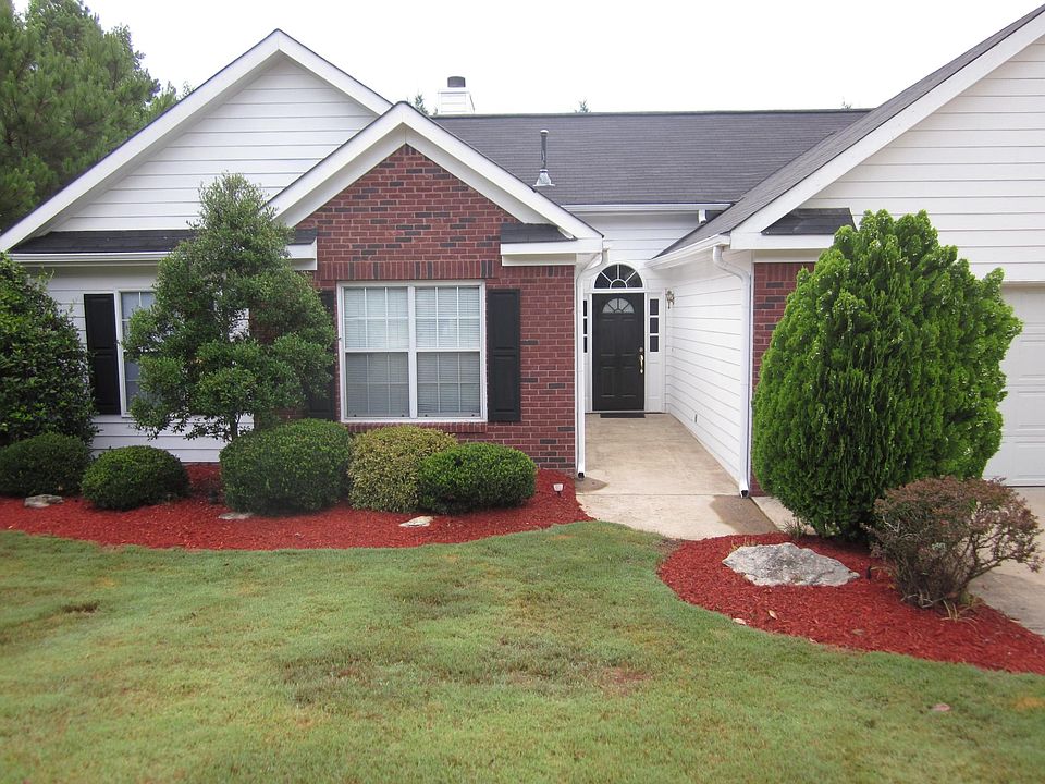 3 BR 2 bath ranch. Huge master suite w/large private bath. Double vanity. Separate garden tub/shower. Lg walk in closet. Open great room w/vaulted ceilings. Double sided fireplace to kitchen. Spacious 42" cabinets. Fenced back yard. Deck and pergola. All new paint and carpet.