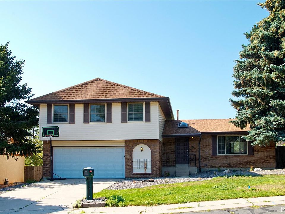 Tri-Level Charmer in desirable Villa Loma neighborhood! Room for all with 2700 square feet, 4 bedrooms, 3 bedrooms and large living areas! Nice sized lot at over 8700 square feet with mature trees and large fenced yard. Enjoy the views and sunshine from the composite deck in back or catch some shade on from the lower level concrete patio. Located in District-11 School District with nearby access to schools, parks, hiking trails and shopping. Upon entering the home, enjoy the formal living and dining room spaces perfect for entertaining. Light and bright kitchen with corian countertops, eat-in space and walk-out to back deck. Lower Level family room space offers fireplace with brick surround, additional walk-out to back patio, and nearby laundry and bathroom. Space upstairs for the entire family with 4 bedrooms and cozy sun room. Master suite with attached bathroom and walk-in closet. All bedrooms offer carpeted flooring and ceiling fans.