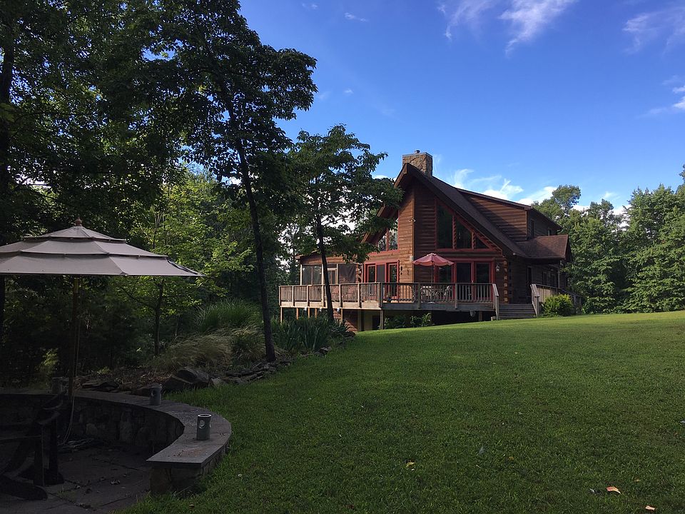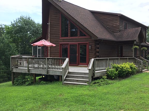 Enjoy peace, quiet and privacy in this lovely 4BR 3BA contemporary log home close to 66 in Marshall! Features include: Gourmet kitchen with quartz counters and stainless appliances, large vaulted family room with stone fireplace; extensive hardwood floors and exposed wood; main level bedroom and full bath, large upper level master suite with full bath, sitting room and loft office overlooking family room; fully finished basement w/ 2 bedrooms, full bath, rec room and wine room; extensive deck and screened porch; water feature, shed, 2 car garage and much more! Come take a look and you will not be disappointed!