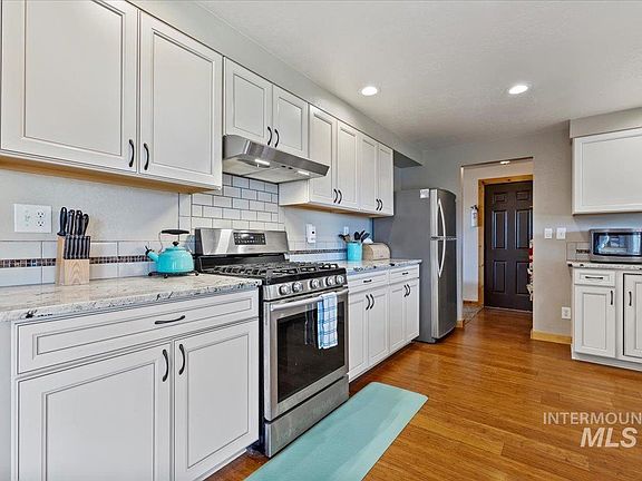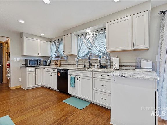 At just under an acre & so close to town, this property is an absolute gem! Enjoy your large kitchen that has been beautifully updated with new cabinets and granite countertops. Rich brick fireplaces adorn two large living areas that allow for entertaining and spacious living. Relax in your spacious primary bedroom, with walk-in closet and updated dual vanity bathroom. You can enjoy the great Idaho sunrises from your primary bedroom or 12x36’ deck overlooking the large backyard and pastures. You will love the large 26'x34' (884 sf) shop w/ 220 amp perfect for woodworking, mechanic work and toy storage. Large, fenced spaces allow room for RV storage, hobbies, pastures, livestock and so much more. Existing chicken coops included! Newly installed solar panels provide independent power and allow for low-cost utilities. Country living with NO HOA is difficult to find these days, so check out ALL this home has to offer before it’s too late!