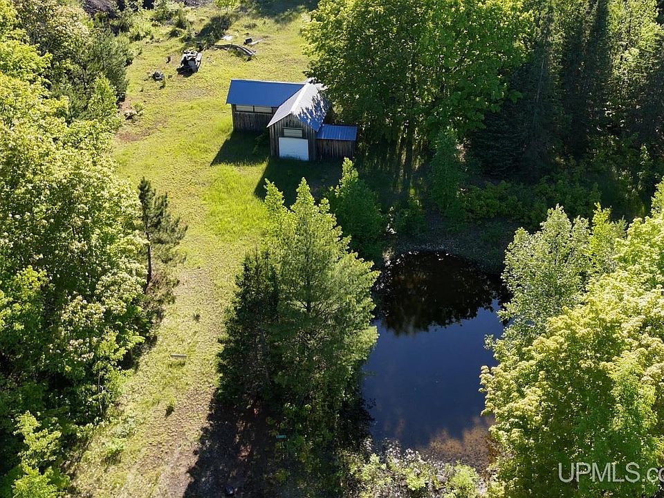 10 acres of beautiful, peaceful property between Houghton and Calumet! The land has a nice pond (minnows were seen swimming in it), a rustic garage/shed with a good roof, driveway and clearings. Property is accessed via a seasonal county road and is off the grid. The land is surrounded by CFA lands for additional recreational opportunities. No zoning in Osceola Township. This is a very good wildlife area. Trail 17 is very close to the property. The land is being sold as is, whatever personal property that is on the land or in the buildings will remain with the sale. This could be the perfect spot to park your camper and get away from it all!