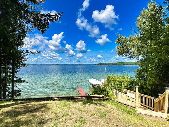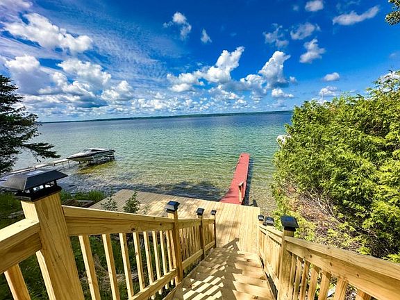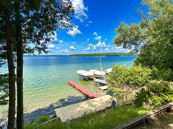 Located on the East Shore of Hubbard Lake is where you will find this fully furnished, 2 bedrooms, 1 bath Lakefront cottage. 50' frontage with beautiful sunsets. All new decking and sidewalks, June of 2024 with solar post cap lights. 20x10 lakeside deck that has two 6' sliding glass doors. 24x14 open kitchen and living area, with 10' vaulted ceiling. 12x10 floor to ceiling brick wall. The main heat source is the wall furnace, there is also the Osburn Wood burning stove will keep you extra warm on a cool night. 11x9 bedroom. Second bedroom is 8x11, 6x8 bathroom with walk in shower. 8x8 bonus room, perfect for work at home office, or extra beds for the overflow of company. 16x24 detached garage, with concrete floor. 9 foot wide and 7-foot-tall overhead door. Large enough to store your boat and trailer. Just across the street, is this 50x134 vacant lot, with a 12x8 shed and a well that is shared with 2 other lots to the north. This home has been in this family since 1985, almost 40 years, and taken extreme pride in ownership. White Pine National Golf Course is a 5-minute drive south. There are several restaurants within a 5 - 10-minute drive, or if you prefer to travel to dinner by boat, you can do that too. High speed internet available. Items in the garage are not included but negotiable.