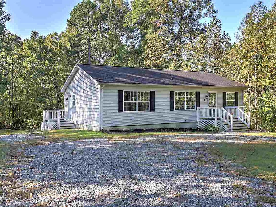 Perfectly situated on 2.5 private acres and conveniently located between Louisa and Gordonsville! This 3 bedroom, 2 full bath ranch style home features 1,144 sqft on the first floor and another 1,144 sqft in the partially finished basement! Stainless steel kitchen appliances and maintenance free laminate flooring. Split bedroom floor plan, open dining and living areas and built-in entertainment center in the living room. Newer HVAC and appliances!