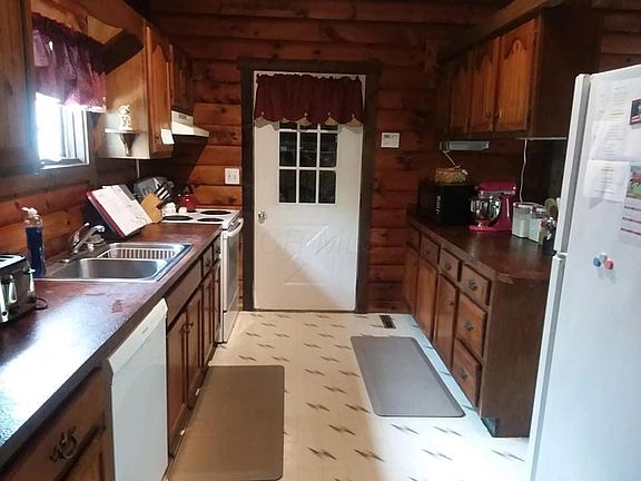 Large Log Home! Plenty of room to enjoy the inside and out! Bonus finished basement area, with half bath. Stove top and kitchenette are in basement for canning. Potential for additional rooms in basement. Relax in your living room featuring vaulted ceilings, gas fireplace and beautiful views. Garden in your backyard, with wonderful raised beds and enjoy the large deck. Woodburner in basement. Kitchen is open to dining area, with pantry and storage. Mature Trees, beautiful setting.