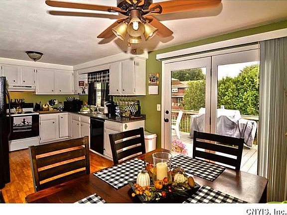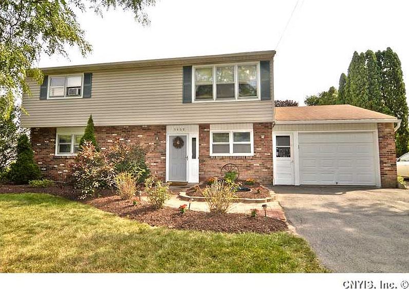 Beautifully updated raised ranch in Clay, conveniently located to shopping on Rt 11. Plenty of space with 2 large bedrooms in the fully finished basement and a HUGE master bedroom with walk-in closet on the main floor. Family room and completely remodeled full bath with custom tile shower in the lower level. Walk up the stairs to the living room and large eat-in kitchen with slider to the two story Trex deck. Other updates include newly painted interior, new light fixtures and ceiling fans, new basement windows, and ALL new carpeting. Don't hesitate, call today!