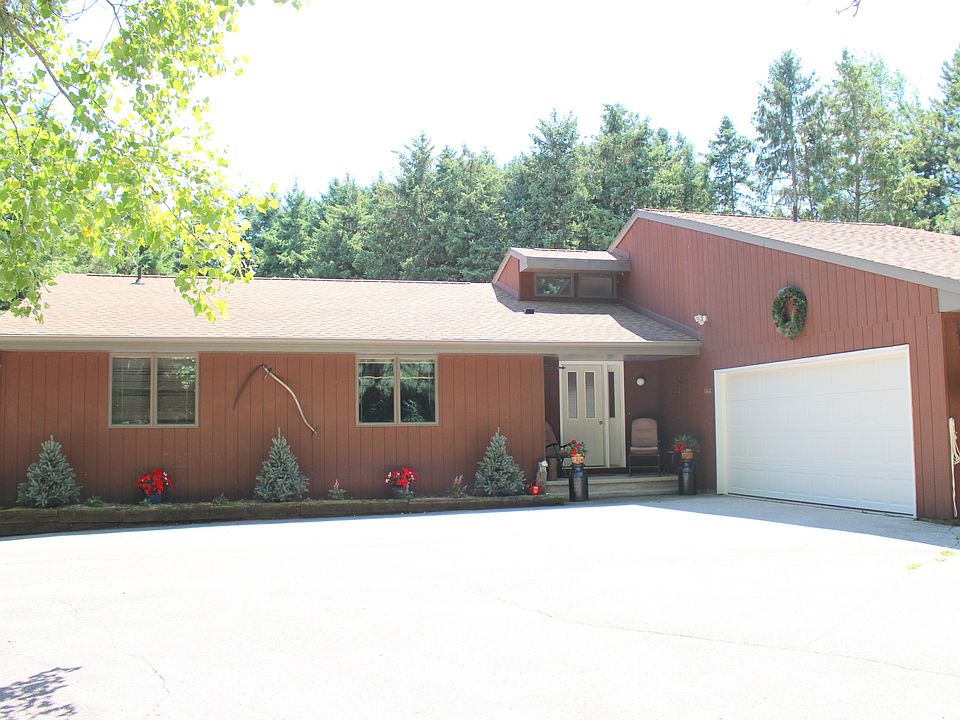 This home is nestled into 5 acres of a tranquil wooded setting. 2600+ square foot ranch, with 3 bedrooms and 2.5 baths, oversized kitchen and dining area, living room with 3 season sunroom. Master suite with walk in closet and full bath. Finished lower level with gas fireplace, and tons of storage. Outside find a 2 car attached and 3.5 car detached garages. Back patio with pergola for relaxing.