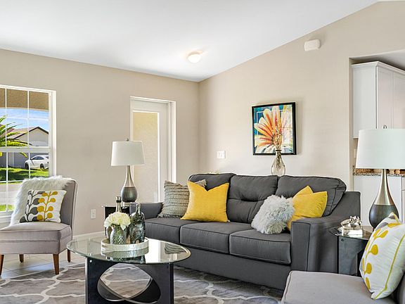 The "Pineland" model. Beautiful 3 bedroom, 2 Bath Home. Home included a 10 year structural warranty and a 1 yr warranty! Open floor plan with cathedral ceilings and center island kitchen. Spacious living room leads to large covered lanai. Concrete Block Construction and Wood Interior Framing, Under Truss Lanai, Lenox 14 Seer high efficiency AC system, Moen plumbing fixtures, Dimensional Shingles, PGT Low E Insulated windows, 36" upper cabinets with soft close doors, Granite Counters in Kitchen and Bathrooms, Stainless Steel Kitchen appliance package, colonial style raised panel doors, electric garage door opener, 18" tile flooring in main living areas , Stone Accents on front elevation of the home, irrigation system, epoxy coated garage floors. Pictures shown are of a completed home and features may differ. You will not find another new construction home at this price with this quality of construction!