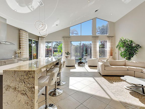 Stunning Modern Home in Whisper Trace, Broken Sound Country ClubWelcome to this beautifully remodeled 3-bedroom, 2-bathroom single-family detached home located in the lovely village of Whisper Trace in Broken Sound Country Club. Designed with modern elegance, this home boasts porcelain tile flooring, soaring vaulted ceilings, and sleek smooth walls that create an open and airy ambiance. The chef's kitchen is a true centerpiece, featuring a spacious center island, custom cabinetry, and top-of-the-line finishes--perfect for entertaining and everyday living. The primary suite is a serene retreat with a walk-in closet, while the additional bedrooms and bathroom offer comfort and flexibility for guests or a home office. Step outside to your private backyard oasis, complete with a sparkling pool and breathtaking views of the 8th fairway of the golf course. Whether you're lounging poolside or enjoying the lush scenery, this home provides the ideal blend of luxury and tranquility. Located in a prestigious community with world-class amenities, this property combines modern living with the exclusive lifestyle of Broken Sound Country Club. Don't miss the opportunity to make it yours!