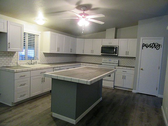 - Breakfast Bar, Pantry, Shower/Tub Combo, Tile Counters, Double Vanity, Walk-In Closet(s), Ceiling Fan(s), Kitchen Island, Tile Shower, Vaulted Ceiling(s)