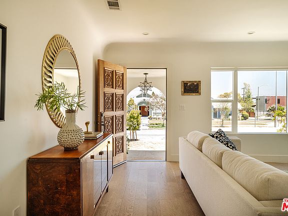 Step into the epitome of elegance at this beautifully updated Spanish bungalow in the tranquil Park Mesa Heights neighborhood. This gem perfectly marries classic charm with modern conveniences, offering a serene retreat in the heart of Los Angeles. The home's exterior has been freshly painted, complemented by a newly automated fence and a stylish front door, preserving its Spanish heritage while introducing contemporary flair. The driveway has been thoughtfully widened to accommodate modern vehicles, with new concrete flooring and a secure gate enhancing the north side. Relax on the inviting front porch, ideal for morning coffee or friendly chats with neighbors. Inside, an expansive open floor plan seamlessly connects the family room to the dining area. The family room, bathed in natural light, features a stunning modern fireplace, creating a warm and welcoming space. Host gatherings in the adjacent dining area, which leads to a sleek kitchen equipped with a center island and top-of-the-line appliances. The easy access from both the dining room and kitchen to the outdoor side patio and back door enhances the indoor-outdoor living experience. A private hallway separates the serene bedrooms from the social areas, ensuring tranquility and privacy. The generously sized bedrooms share a stylish bathroom featuring vibrant green paint, a modern shower, and dual vanities. At the end of the hallway lies the spacious primary suite, a true retreat with wall-to-wall custom closets, an elegant en suite bathroom with exquisite tiling and modern fixtures, and sliding glass doors opening to a lush back porch. The detached two-car garage offers ample storage space, and the surrounding neighborhood provides unparalleled access to downtown LA, the beaches of Venice, Marina del Rey, and Playa del Rey, as well as SoFi Stadium, LAX, and local parks like Kenneth Hahn State Recreation Area and Van Ness Recreation Center. Enjoy local favorites like Jon and Vinny's and Hilltop Coffee, adding to the vibrant community experience. Welcome to your new haven in Park Mesa Heights, where historical elegance meets modern living.